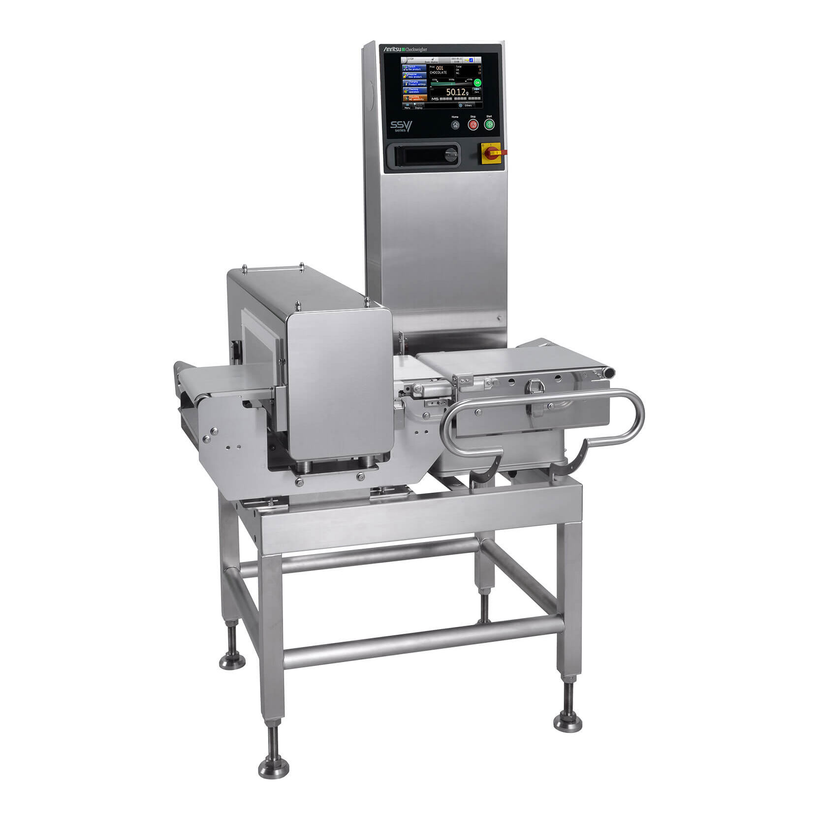 The High Accuracy Combination SSV-h Checkweigher and Metal Detector is equipped with a high speed and highly accurate force balance, every product is measured precisely to ensure each package contains the required amount of product. Meets the highest accuracy and reliability standards in food, industrial and pharmaceutical products.