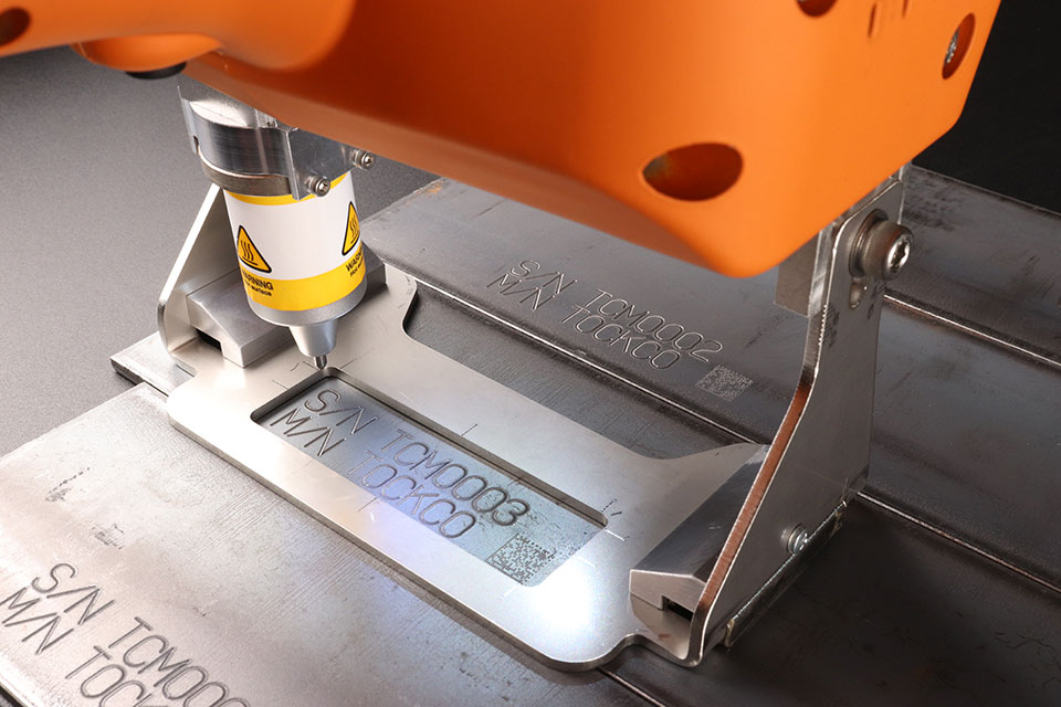 The largest portable dot peen marking machine in the market. Connects through local Wi-Fi or USB Cable (included).