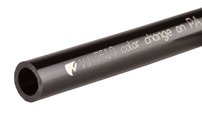 The Videojet 7510 50-watt fiber laser marking system delivers enhanced performance for high-contrast marking on tough plastic packaging, metal containers, and other industrial products, even at ultra-fast line speeds of up to 440 m/min. Designed specifically for beverage, pharmaceutical, and high-speed extrusion manufacturers, the 7510 offers improved marking quality, increased efficiency, and a much smaller marking unit than traditional solid-state laser systems.